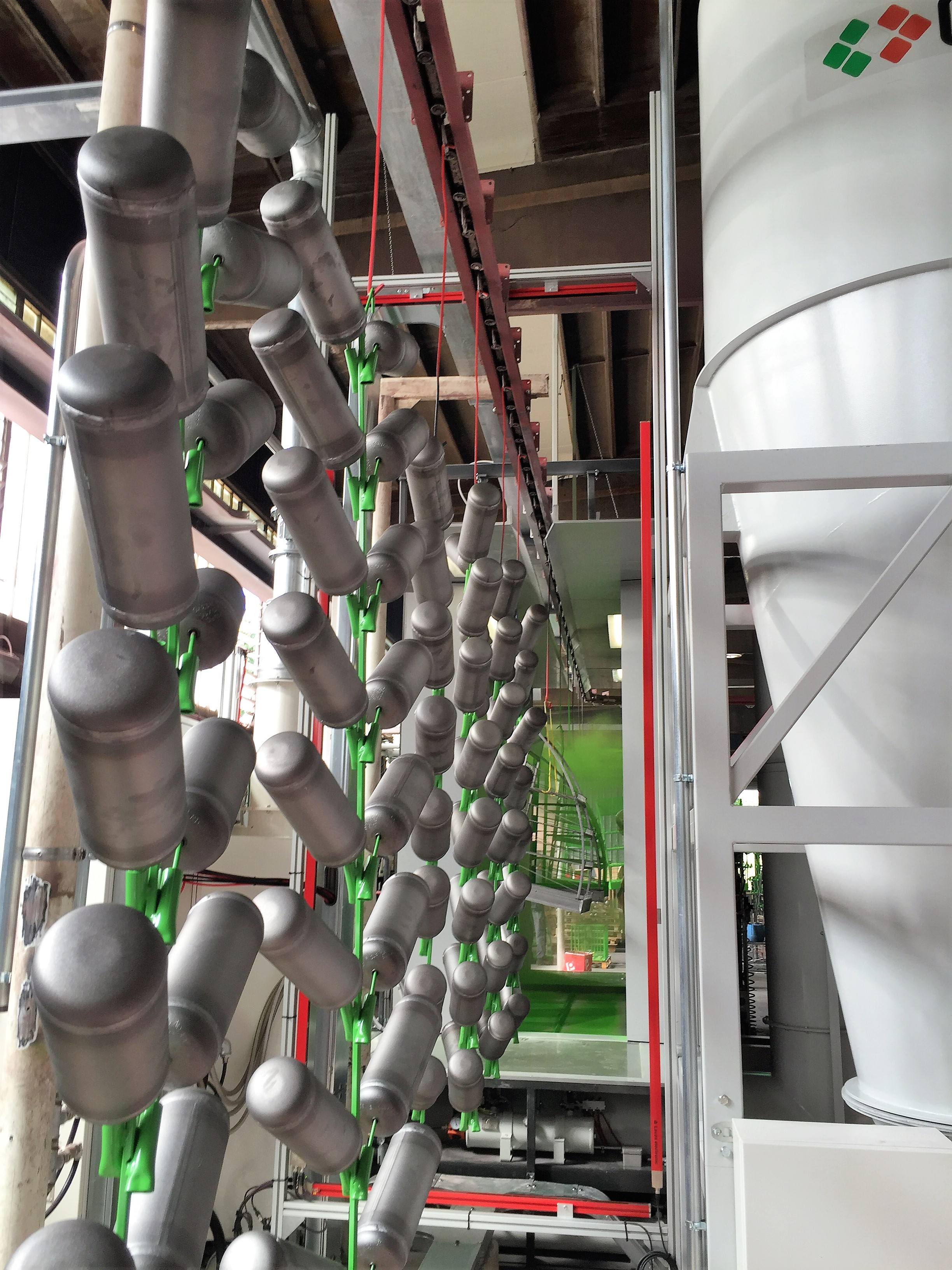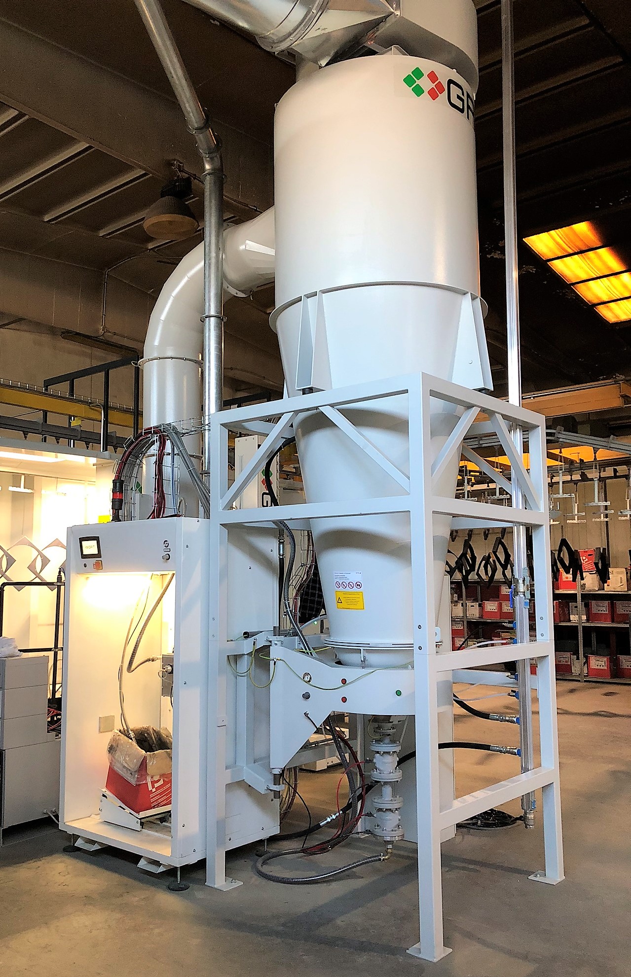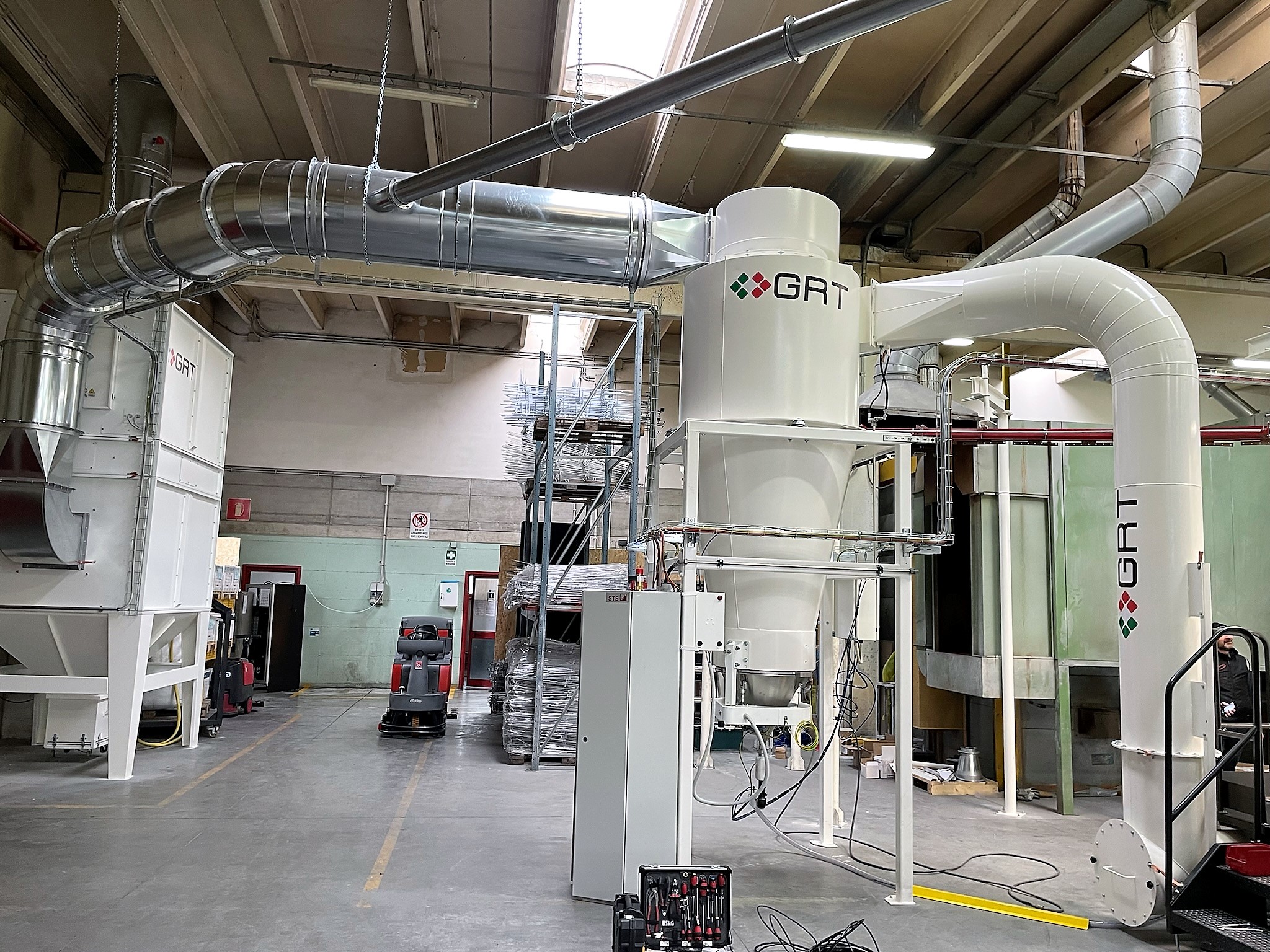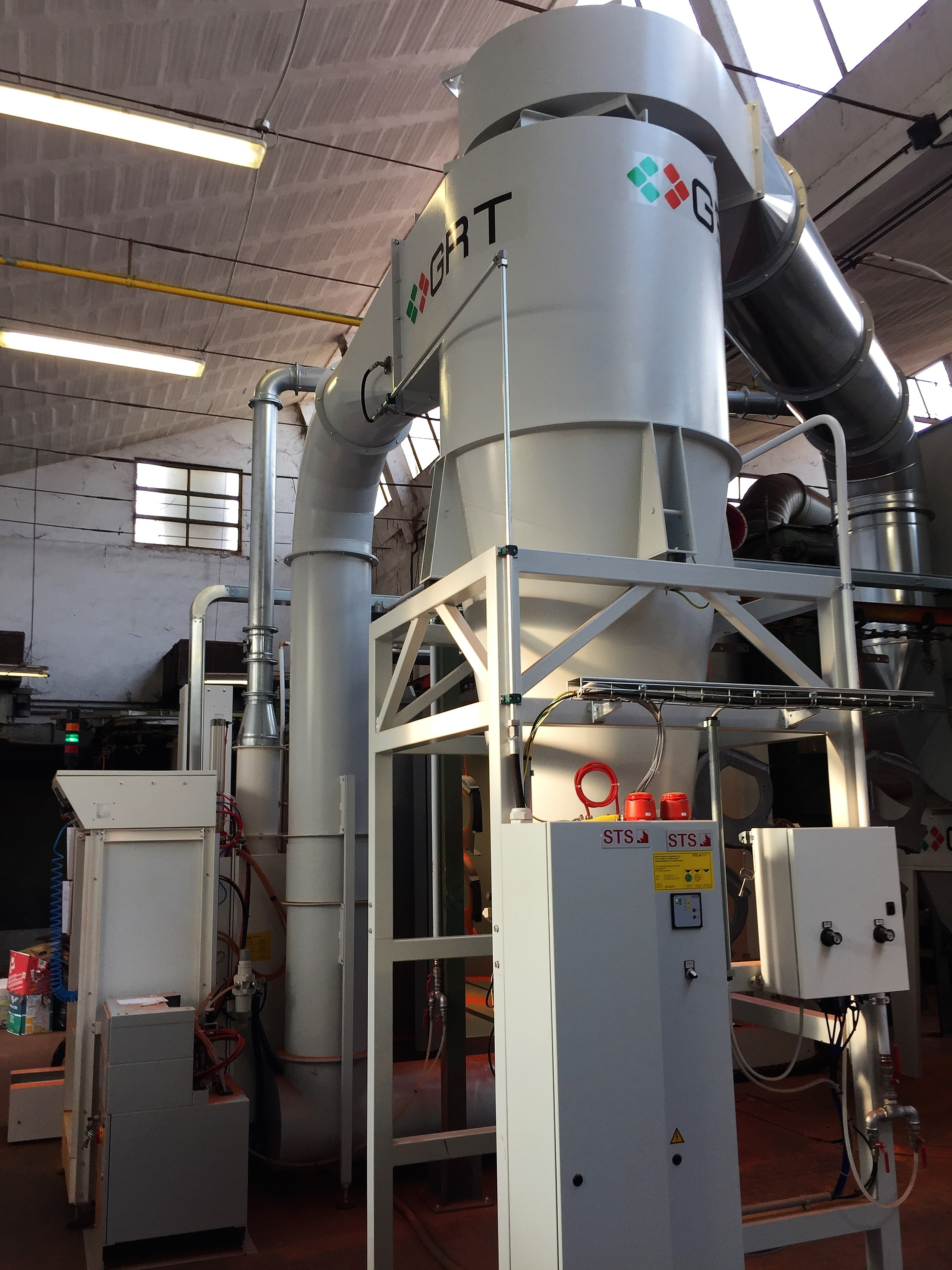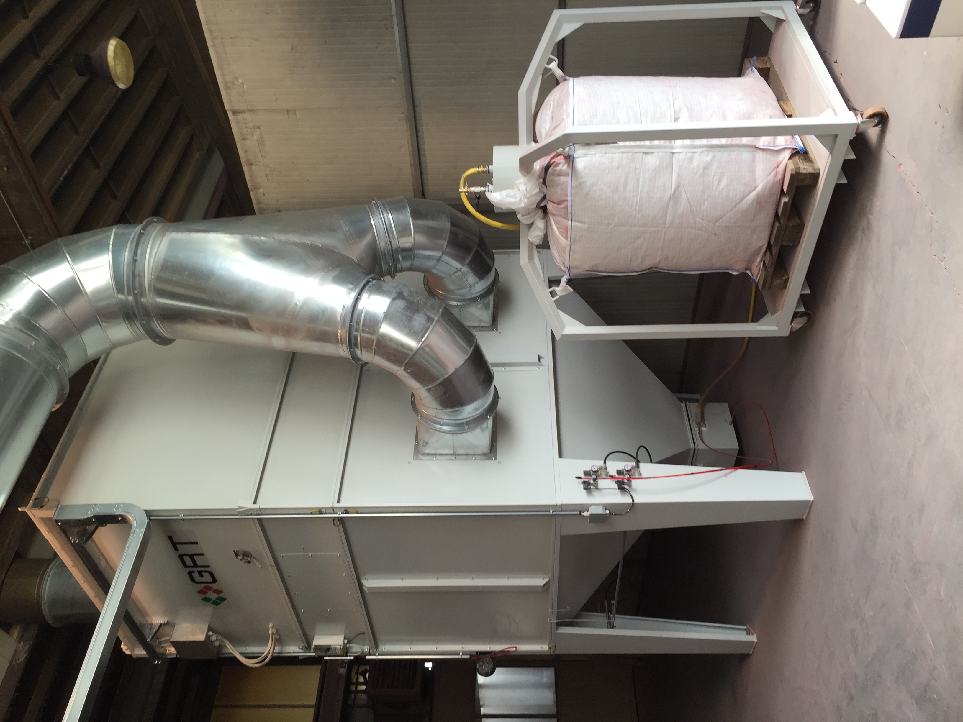 La polvere a perdere viene poi raccolta da un contenitore carrellato per facile estrazione, con predisposizione allo scarico automatico.