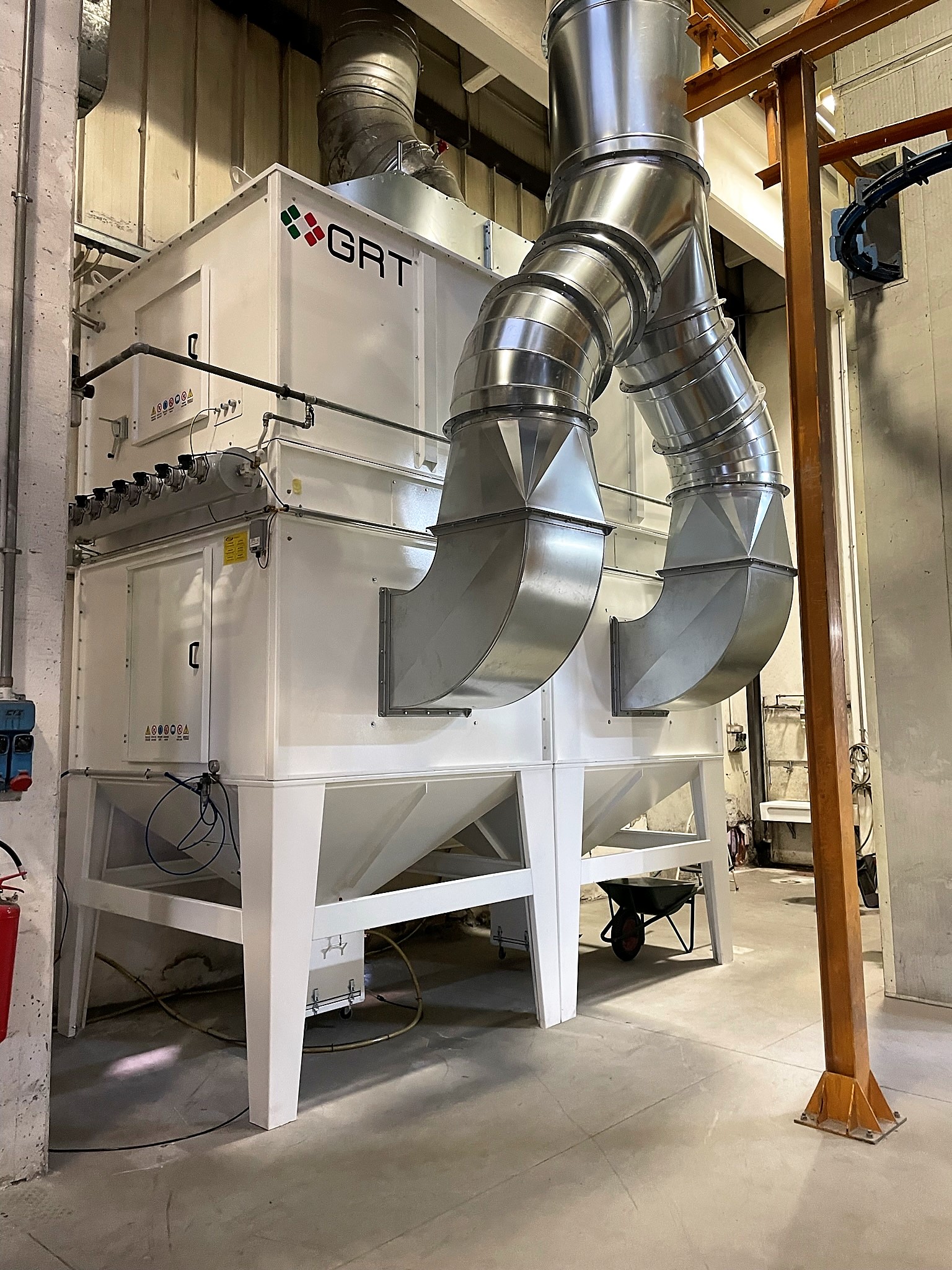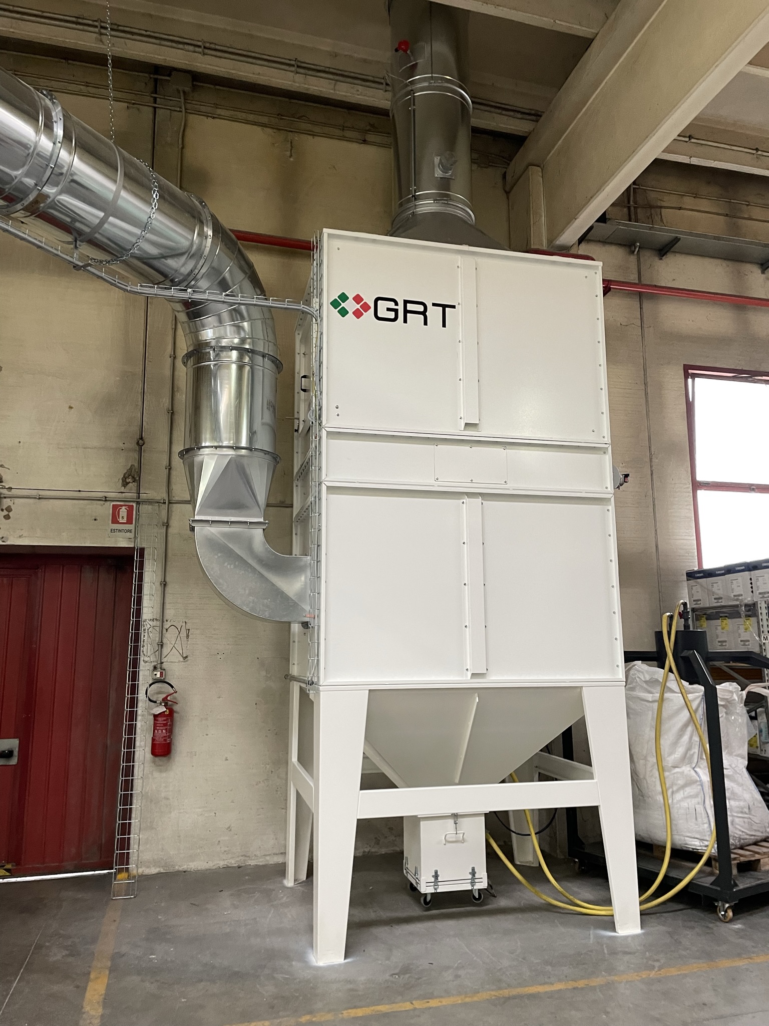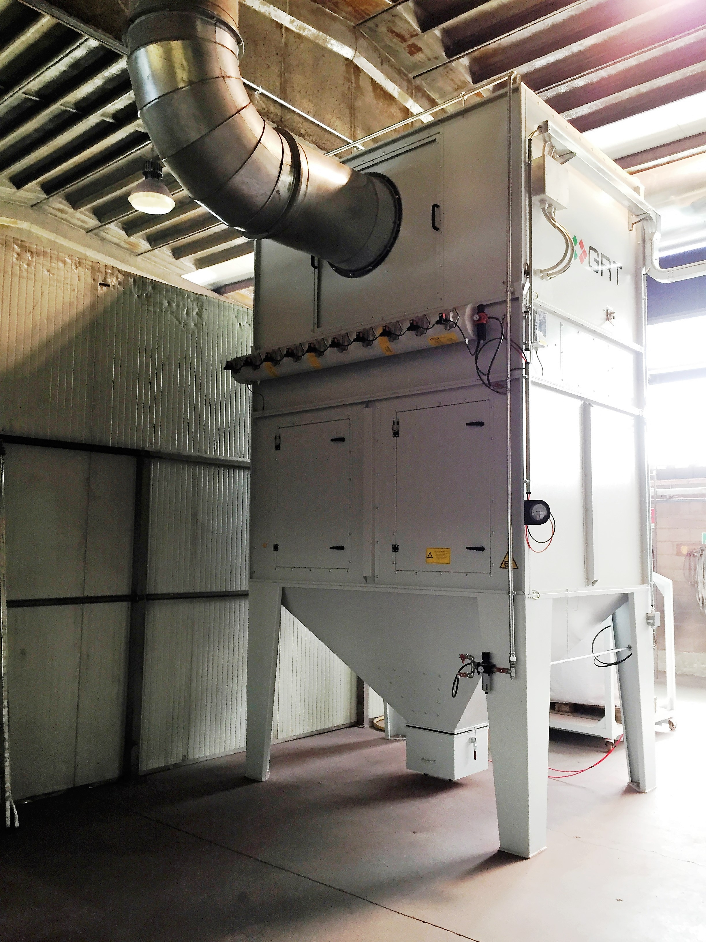è composto da ventilatore e motore insonorizzati (<80 dB), cartucce ad alta efficienza con sistema di pulizia automatica in contropressione integrata.