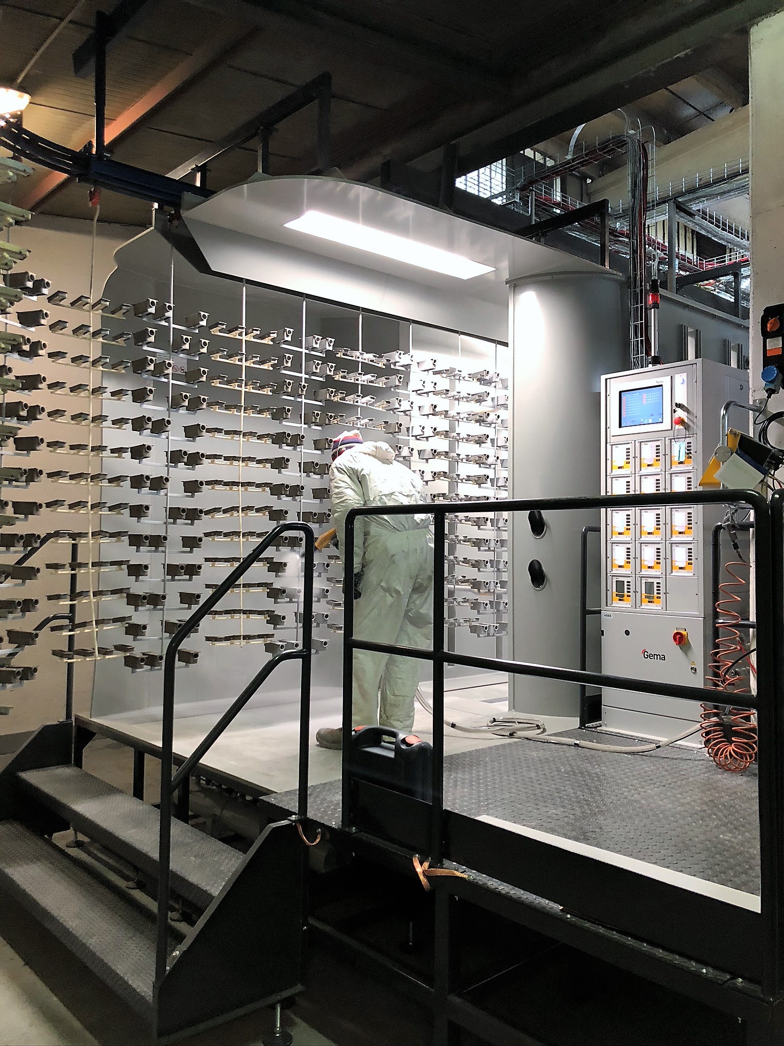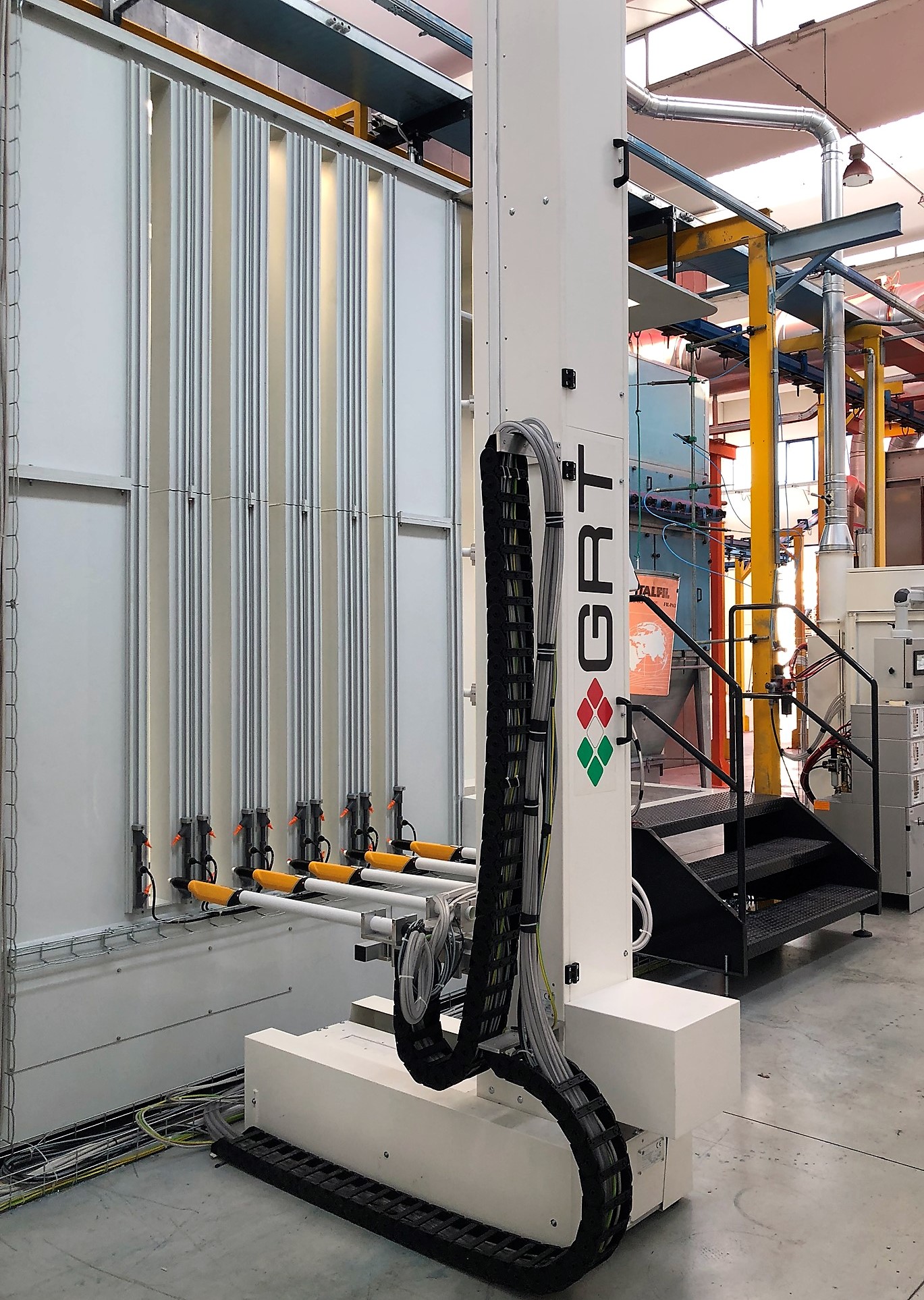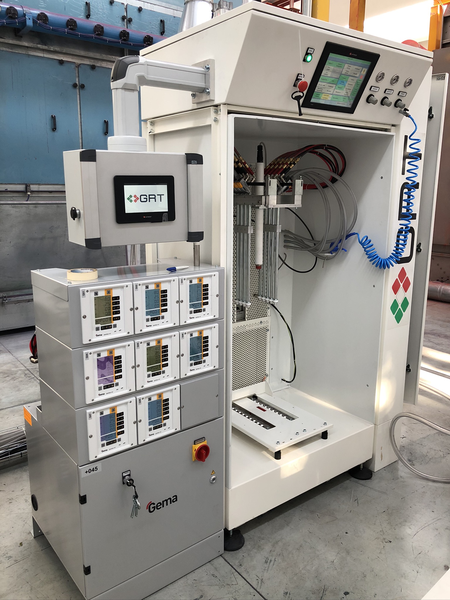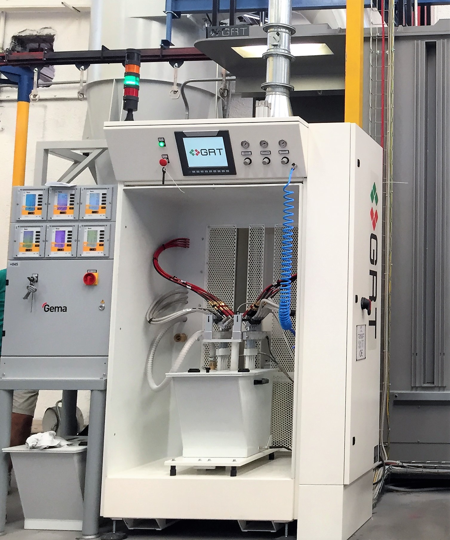 Per questo motivo GRT Srl ha deciso di utilizzare sulle proprie cabine, esclusivamente apparecchiature elettrostatiche della società Gema, leader mondiale nel settore della verniciatura a polvere.